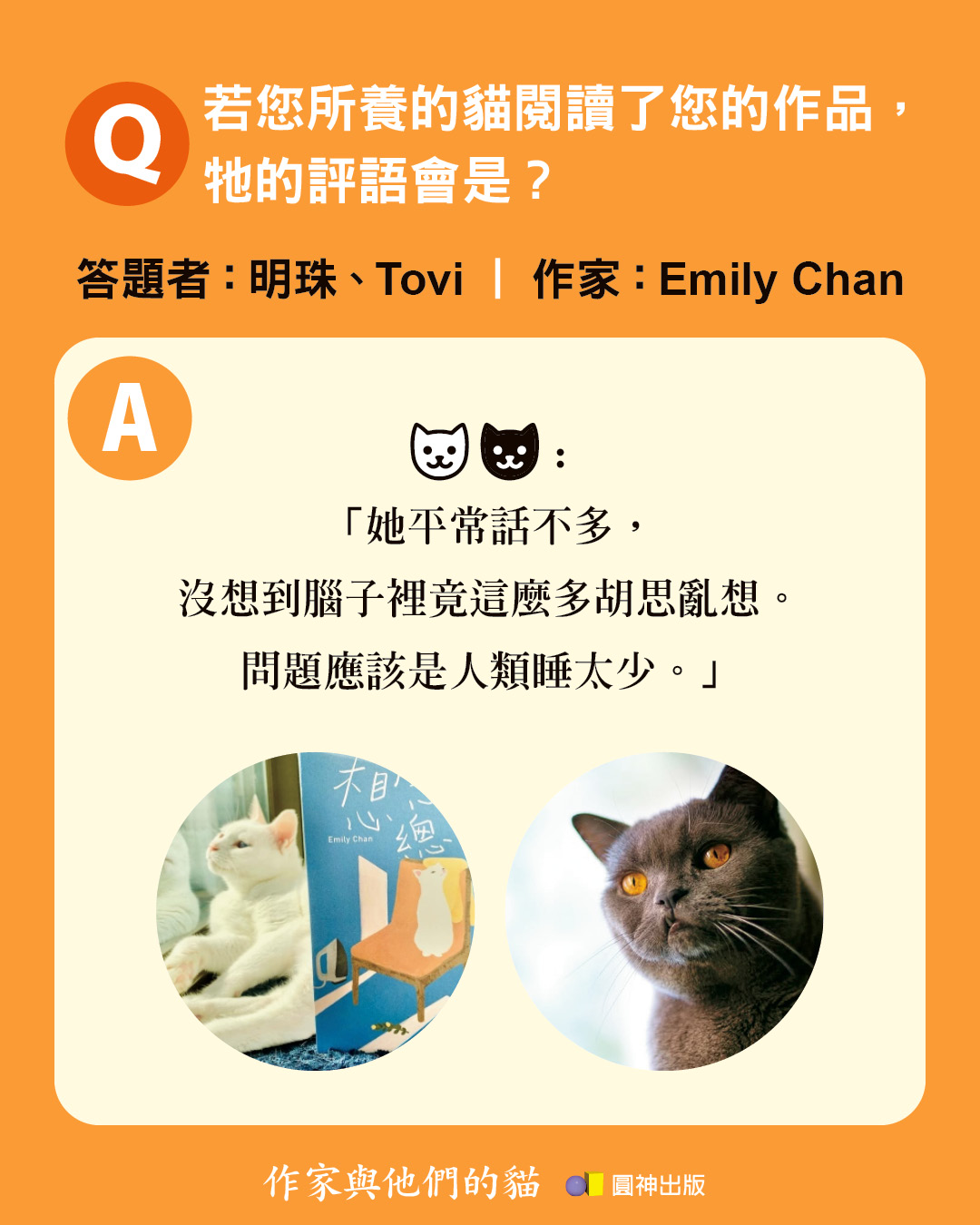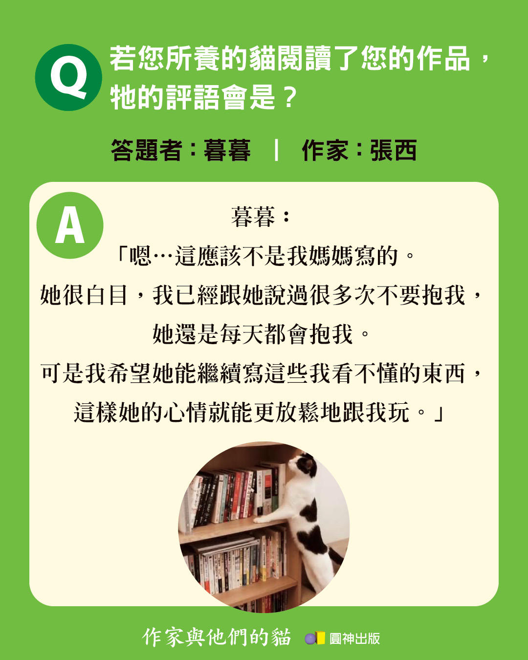 Q1.若您所養的貓閱讀了您的作品,牠的評語會是?