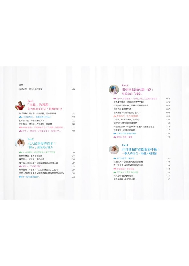 但如果你不願意放下「不適合」的人,幸福又怎麼會來敲門呢?我常覺得,感情就是有捨才有得!得到不難,但要先學會放下。放下那個你心裡知道「不適合」你的人。