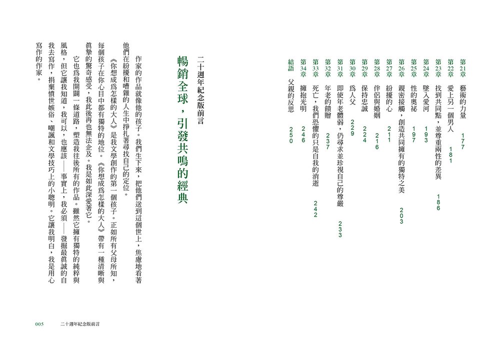 如今,二十年過去,十幾本書問世,《你想成為怎樣的大人》依然守護著它的文學兄弟們,以同理之心和關懷之情發聲,無論他們的聲音或目的為何。