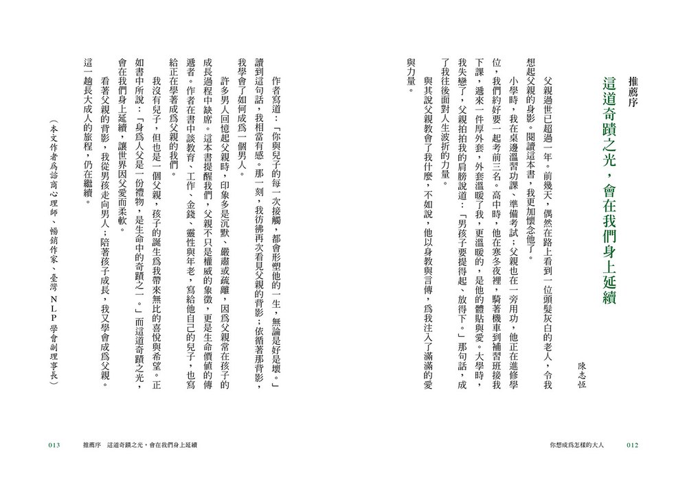 有些文字讀完會被遺忘,有些文字卻會在心底留下一輩子的迴響。這本書不給你標準答案,卻陪你勇敢問問題;它不指引你該成為誰,卻在你迷惘時給你最溫柔、最堅定的陪伴。願我們都能在自己所在之處,為身邊的人帶來溫暖的光。終有一天,你會發現:當你成為「更好」的自己,那就是長大成人的禮物。