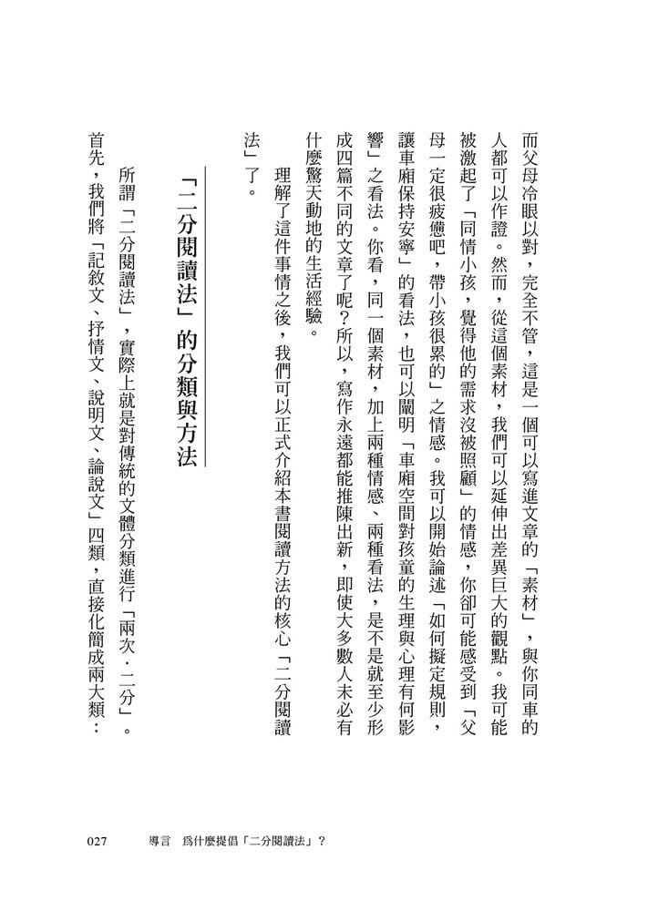 「二分閱讀法」的分類與方法