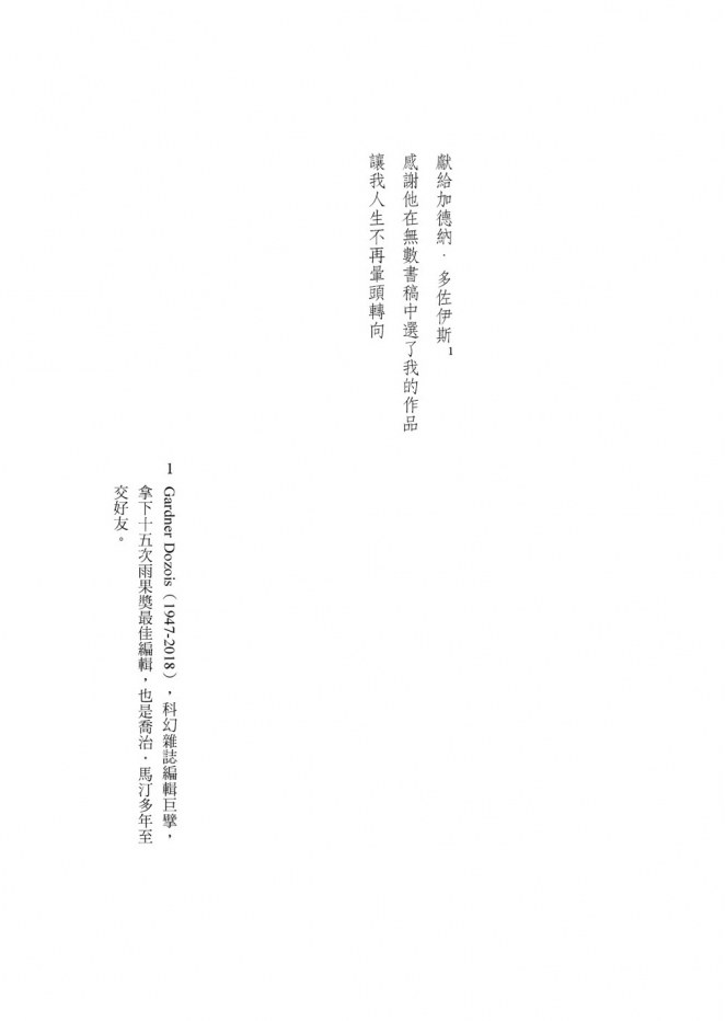 「諾塔拉什人的神話中曾提到沃克林的故事。我讀了驚為天人。他們說,沃克林是一個擁有意識的種族,他們從銀河中心某個神祕之處出發,朝外航向銀河邊緣,據傳,目標是飛往銀河之間的宇宙,他們潛行在星際深處,從不著陸,很少飛入恆星一光年之內。」克洛黎灰色眼珠閃爍,一邊說,手一邊激動地揮舞,彷彿他的雙手包裹著宇宙。「而且完全不靠星際飛躍,羅伊德,這件事太難以理解了!船艦速度慢到幾乎低於光速!這點特別令我著迷!我的沃克林人一定非常與眾不同—智慧超群,從容自在,活得久,看得多,不疾不徐,不會像低等種族,給熱情衝昏了頭。你想想看那些沃克林船艦多古老!」