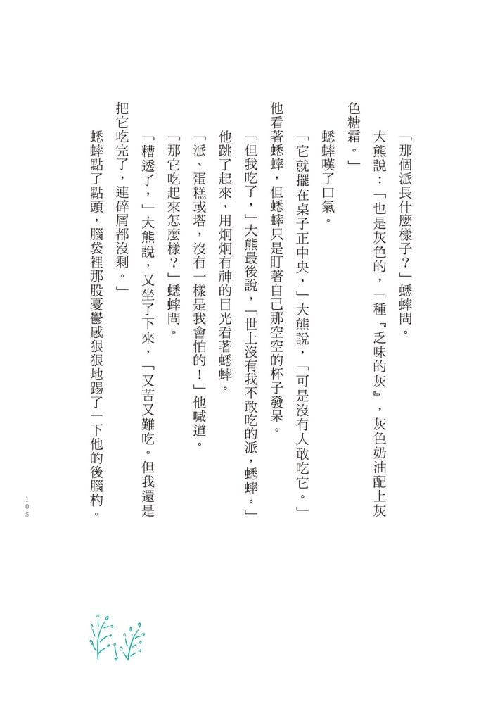 本書有許多段落都在描述蟋蟀如何與「腦中的憂鬱」互動。這種「跳出來」看憂鬱的視角,很值得我們參考。