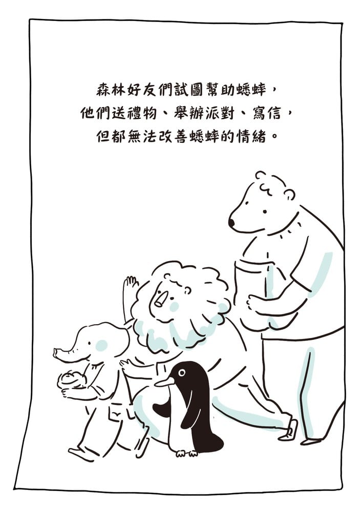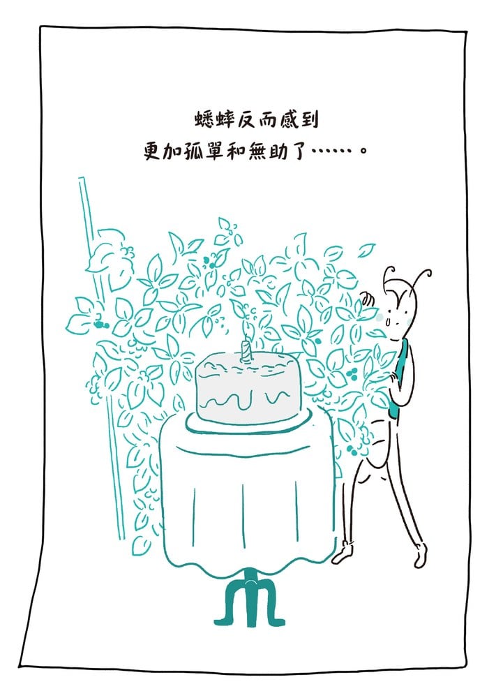 同樣的,螞蟻給蟋蟀下了定義:「這就是憂鬱」,雖然幫他找到了詞彙,卻也只是把經驗塞進分類中,缺少真正的陪伴,不一定能發揮療效。