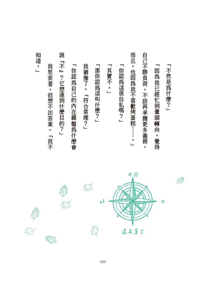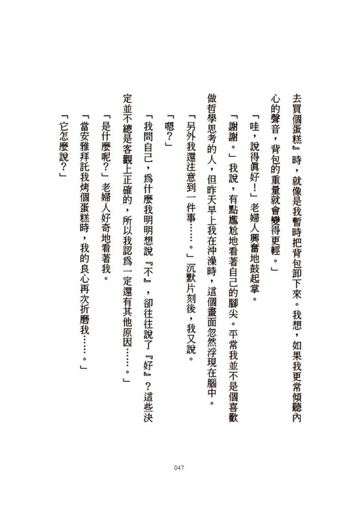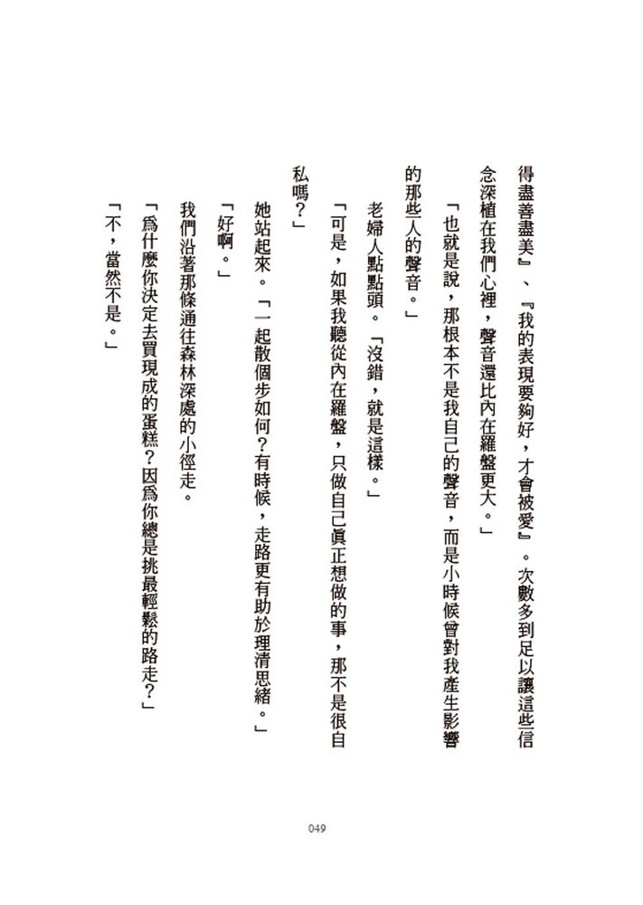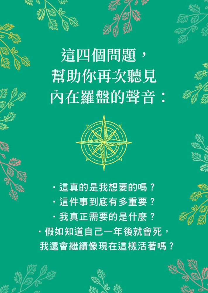 ※改變未必困難、複雜,而且永不嫌遲。我們每天都有機會,有時只要一個問題,一切就會改變,不再像過去那樣活著。你當然值得去做夢,但也值得傾聽自己的聲音。